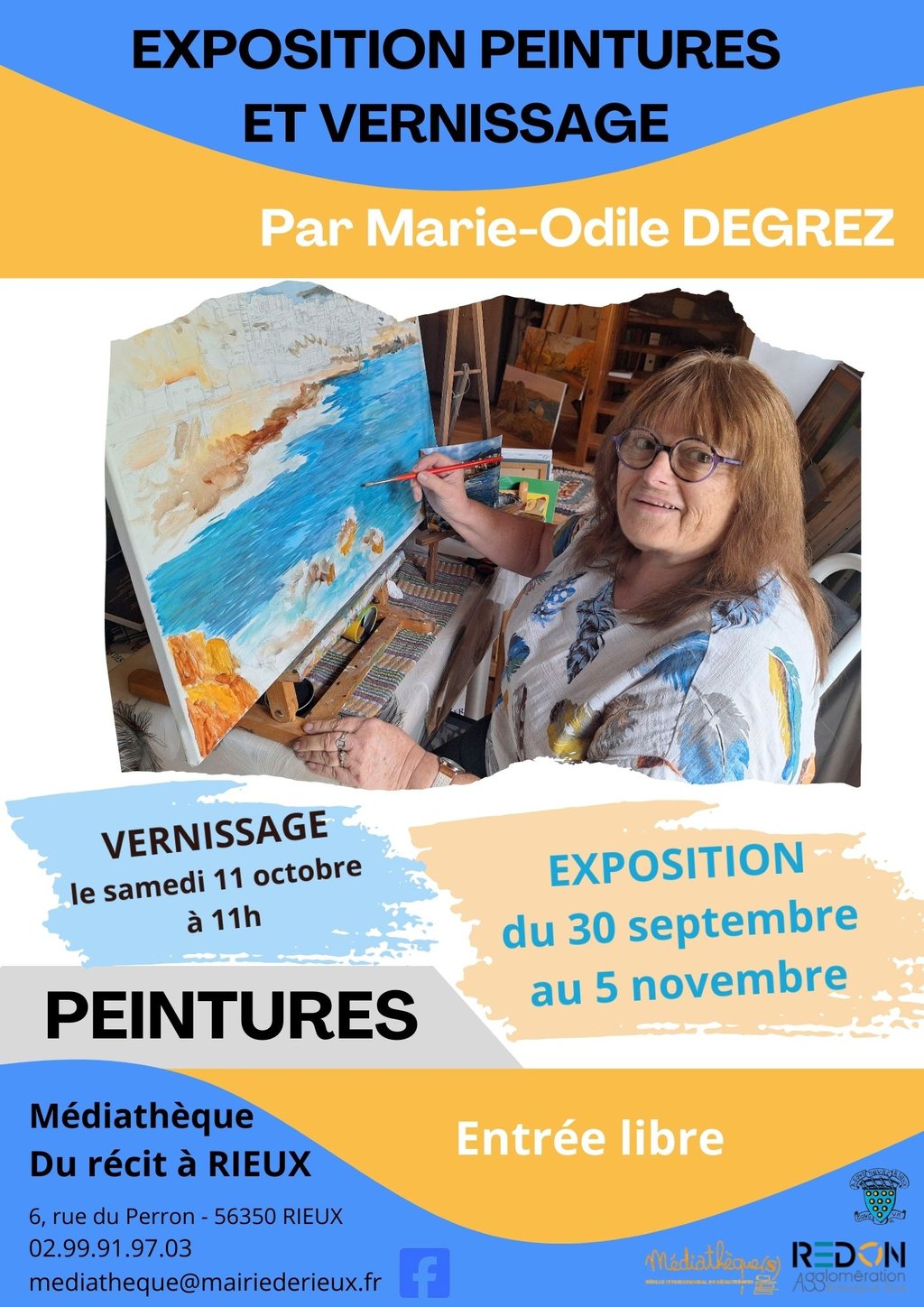 Du 1er octobre au 5 novembre, la médiathèque de Rieux a le plaisir d’accueillir les œuvres colorées et inspirantes de Marie-Odile Degrez.